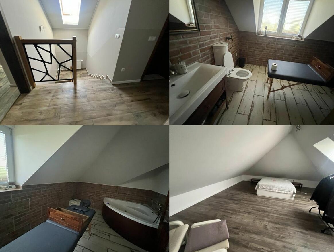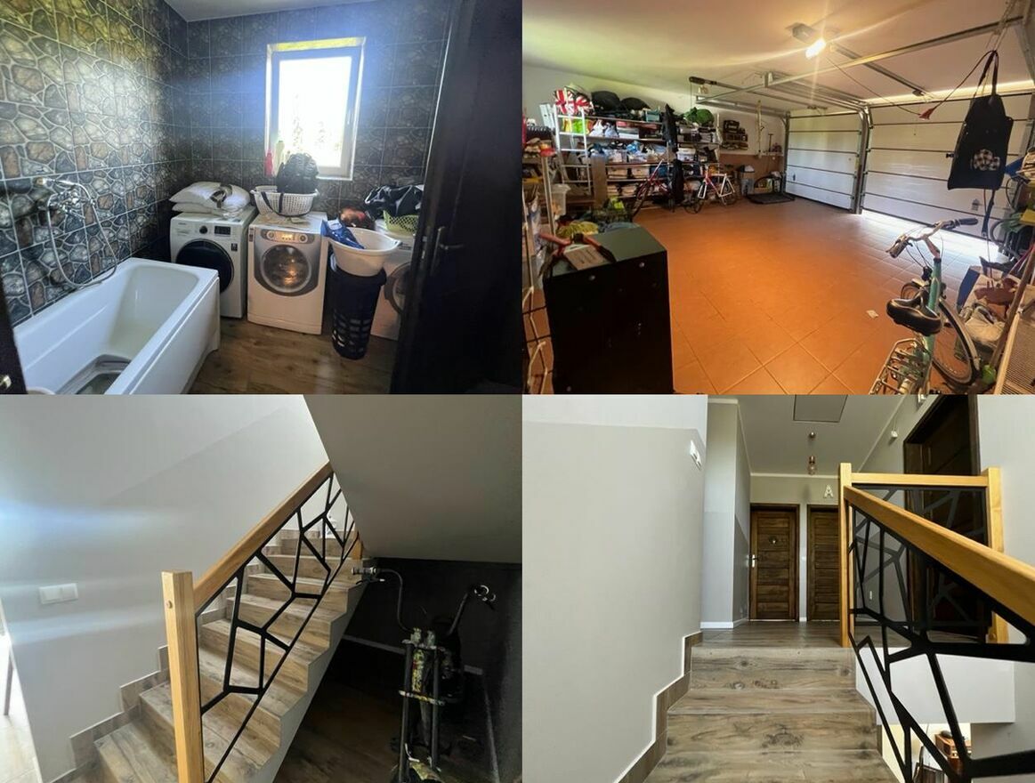 Nieruchomość zabudowana budynkiem mieszkalnym jednorodzinnym, wolnostojącym. Budynek parterowy z poddaszem użytkowym, niepodpiwniczony. Budynek wybudowany w 2010 r., wykończony w 2016 r. nie okazano pozwolenia na użytkowanie ani innych dokumentów dotyczących budynku. Na parterze znajdują się pomieszczenia o funkcji mieszkalno-gospodarczej, na poddaszu pomieszczenia o funkcji mieszkalnej. Budynek o konstrukcji tradycyjnej, murowanej. Dach o konstrukcji drewnianej, kryty dachówką. Elewacja ocieplona, pokryta tynkiem. Budynek w stanie wykończonym. Kuchnia w stałej zabudowie. W salonie znajduje się kominek. Drzwi wejściowe antywłamaniowe. Brama automatyczna.